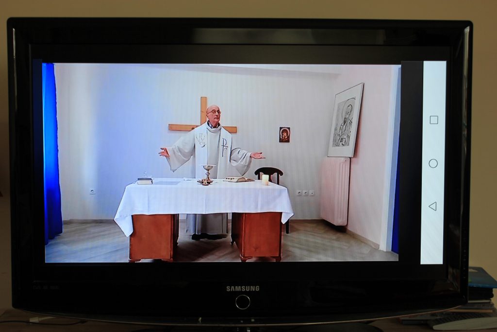 C’est ainsi que nous avons mis en place une messe virtuelle, célébrée par le Père Pierre Salembier, SJ, et animée par des volontaires du JRS sur leur lieu de confinement. Cette messe est diffusée en ligne chaque dimanche et suivie par les membres de nos deux paroisses, par d’anciens membres de la communauté, et même par nos familles éparpillées dans le monde. Elle est un lien vivant et un soutien pour les membres de notre communauté.