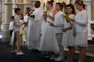 En mai 2019, la Première Communion de vingt-cinq enfants a pu être célébrée. Un papa est responsable de la Préparation de cette Première Communion.