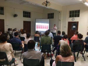 Puisque le diocèse de Singapour nous l’a demandé, nous avons jugé bon de prendre part au festival concluant Catholic200SG – l’année de célébration des 200 ans de l’archidiocèse de Singapoure. Pendant une semaine, les différentes communautés du diocèse étaient invitées à venir partager et présenter ce qui les fait vivre. Par exemple, le créneau horaire avant celui de la CCFS était pris par un groupe de 5 artistes catholiques de Singapour qui présentaient leurs travaux et leurs démarches croyantes. Pour la CCFS, nous avons préparé une série de 5 courtes vidéos portraits. A travers des interviews de 2 à 11 minutes, nous laissions différents profils de la communauté se présenter, dire pourquoi ils sont à Singapour, pourquoi ils sont en lien avec la CCFS, et pourquoi ils y font éventuellement quelque chose (coordination, préparation au baptême). Moi, en tant que membre de l’EAP, je faisais ensuite le lien entre les vidéos et déroulais le fil rouge de la présentation. Il s’agissait non pas tant de faire un exercice de relecture sur nos pratiques que de nous donner à voir fraternellement. Si la préparation fut assez simple de notre côté, il faut dire que le goût singapourien pour la lourdeur administrative a rendu l’exercice un peu moins plaisant. De plus, le jour J, le public ne fut pas vraiment au rendez-vous. Il n’y avait presque personne dans la salle. Le covid y est surement pour beaucoup. Pour nous français, cette faible fréquentation n’est pas dramatique. Il nous importait surtout de répondre positivement à une demande venant de l’archidiocèse. En cela, la mission est accomplie!