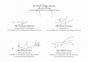 Cette déclaration a été signée par la Présidence de la CEF ainsi que par Mgr Didier Berthet, évêque de Saint-Dié et Président du Conseil pour l’unité des chrétiens et les relations avec le judaïsme, accompagné de Mgr Thibault Verny, évêque auxiliaire de Paris, membre du Conseil pour l’unité des chrétiens et les relations avec le judaïsme.