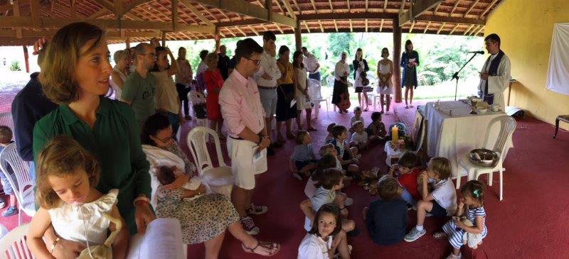 Retraite familialeElles sont accompagnées depuis l’origine par le Père Arnaud de Malartic, de Points Cœur, qui exerce maintenant son ministère à Buenos Aires. Au programme : topos du Père Arnaud – le plus souvent autour d’une encyclique –, messes, adoration, confessions, temps en couple… mais aussi cinéma, balade dans les plants de café, caïpirinhas, et même parfois samba !